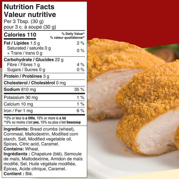 BREAD CRUMBS (WHEAT), CORNMEAL, MALTODEXTRIN, MODIFIED CORN STARCH, SALT, MODIFIED VEGETABLE OIL, SPICES, CITRIC ACID, CARAMEL.