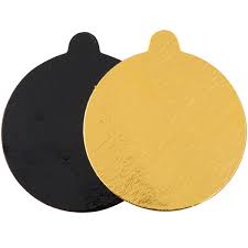 Description: Unlock the elegance and versatility of the Black & Gold Reversible Round Single Serve Dessert Board With Tab, a premium addition to your dining presentation. Crafted with meticulous attention to detail, this exquisite serving accessory seamlessly combines opulence with functionality, enhancing every dessert-serving occasion with its refined aesthetic and practical design.